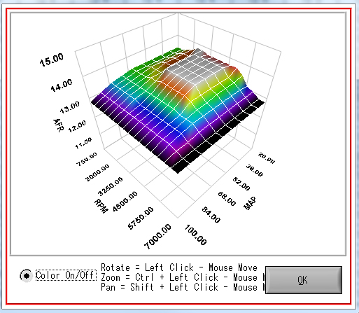 体積効率 (VE)を設定するテーブルです。Flash Tunerのチューニングおいてキーとなる重要なテーブルです。