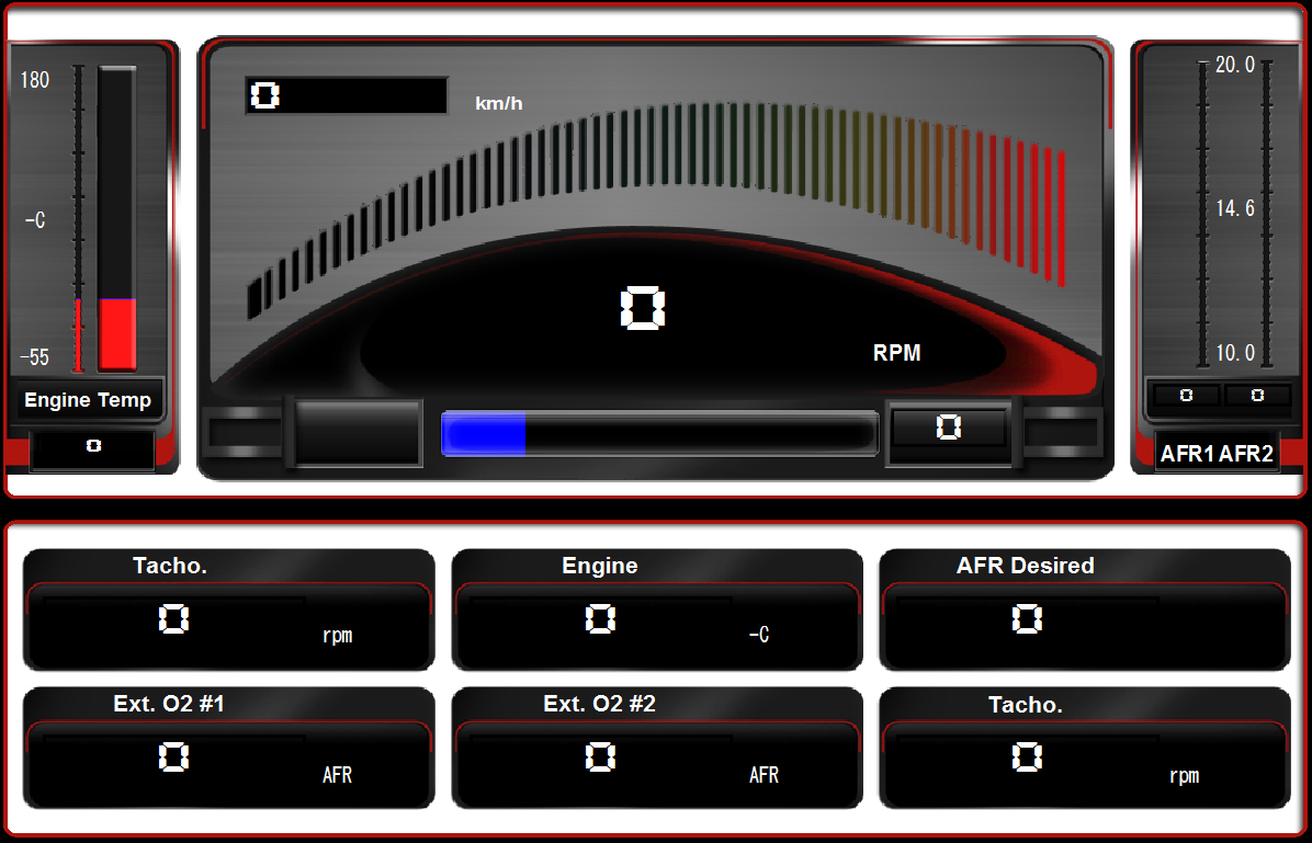 リアルタイムでデーターを表示することができます。ワイドバンドのO2センサーを繋ぐことによってダイノマシンが無くても空燃比を測ることができます。また故障診断などにも非常に役に立ます。 |