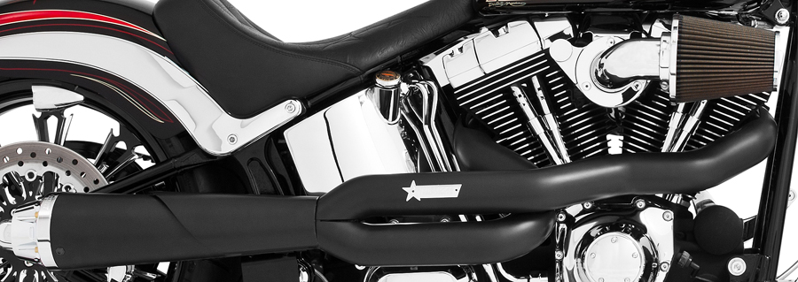 4.5インチの迫力のマフラーが奏でる重低音。クールなブラックヘッダーパイプの2 into 1のフルエキゾーストシステムです。クロームのアルミ削りだしエンドチップ。O2センサーバング付きなのでクローズドループインジェクションにも対応。バッフルは、パワー重視のパフォーマンスバッフルと環境に配慮した静かな消音バッフル(Freedom Performance計測で85〜90db)から選ぶことができます。